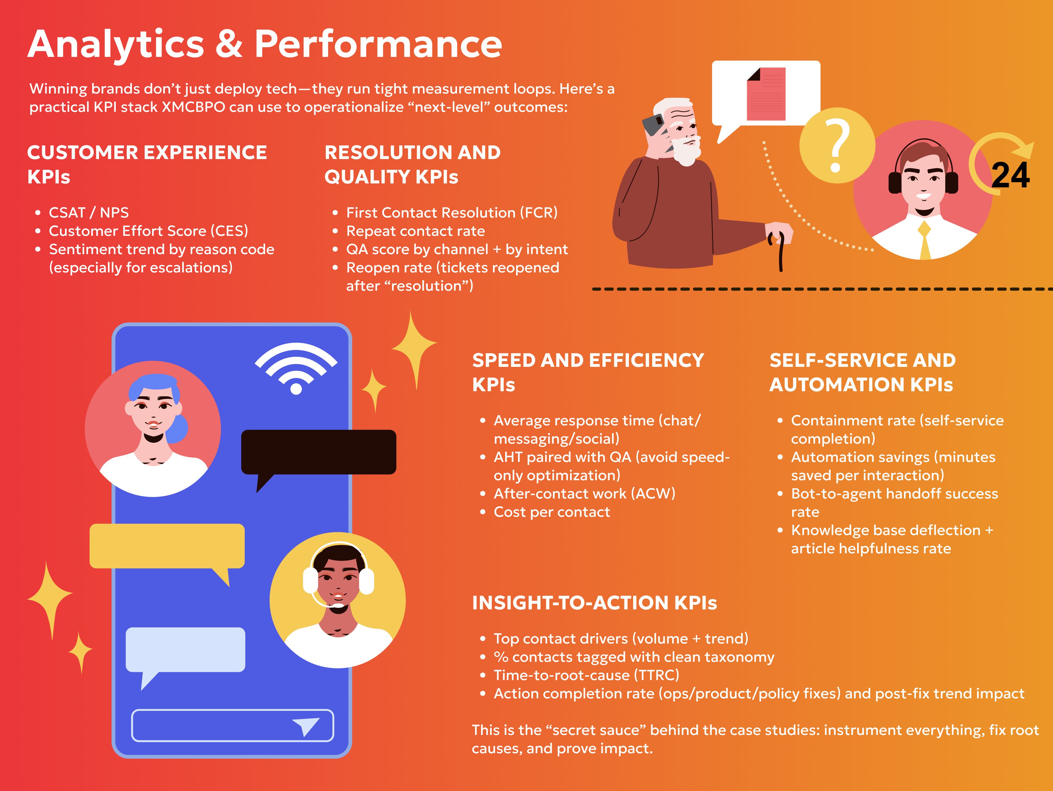 For organizations that want to replicate these wins, XMCBPO can support the full operating model—from omnichannel setup and workflow design to QA governance, analytics, and continuous improvement—so clients don’t just “adopt tools,” they achieve results.