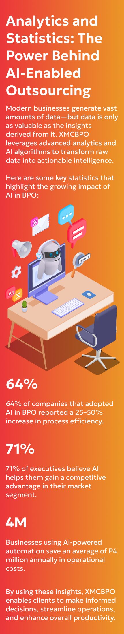 According to Grand View Research, the global BPO market is projected to reach P525 billion by 2030, growing at a CAGR of 9.4%. AI and automation are key drivers behind this growth. Companies are increasingly turning to AI-driven BPO providers like XMCBPO to optimize processes, reduce costs, and deliver data-backed insights that enhance decision-making.