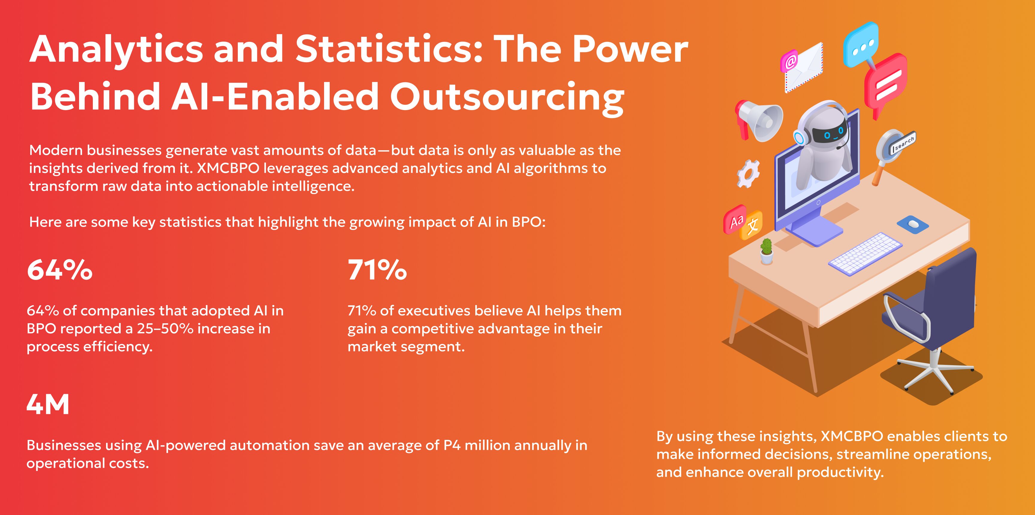 AI reduces the need for extensive manual oversight. By combining automation with intelligent data analysis, XMCBPO helps businesses cut costs by up to 40% without compromising quality.