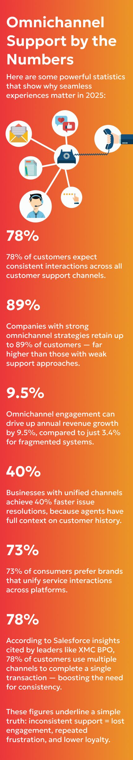 In 2025, omnichannel support isn’t just a buzzword — it’s the standard customers demand. Today’s consumers expect to interact with brands without friction, whether they’re messaging on social media, chatting live on a website, calling a contact center, or switching between channels mid‑journey. For leading service providers like XMC BPO, omnichannel support has shifted from optional to essential, shaping customer satisfaction, retention, and long‑term loyalty.