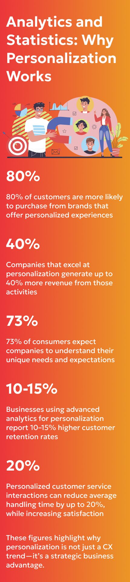 Personalized experiences make customers feel understood and valued, increasing repeat business and long-term loyalty.