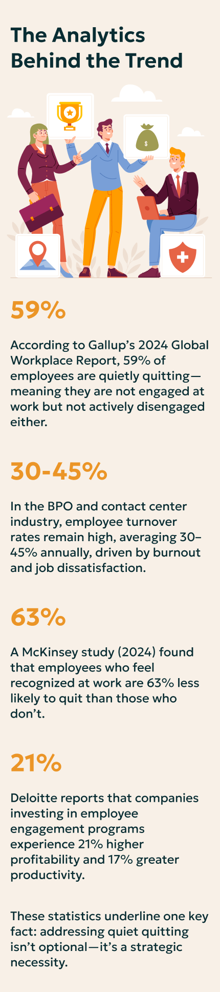 Quiet quitting is not just a buzzword—it’s a reflection of evolving workplace expectations. In 2025, contact centers that invest in their people will lead the industry in both performance and reputation.