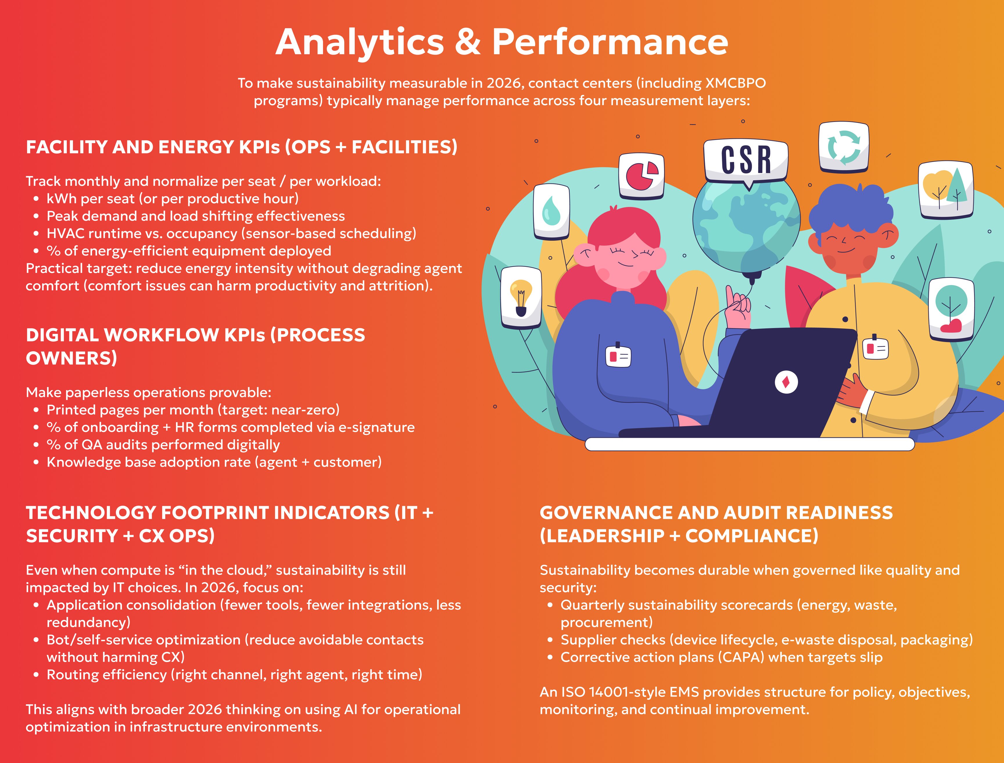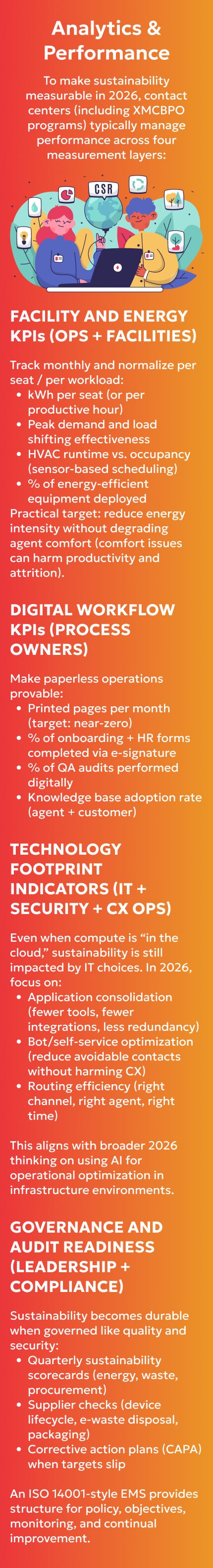 In 2026, sustainability in contact centers is moving from “good PR” to operational discipline—driven by client ESG requirements, energy-cost pressure, and growing scrutiny of digital infrastructure (especially cloud and data center energy use). Contact centers are responding with greener facilities, smarter IT, and more efficient operating models that reduce emissions without sacrificing CX.