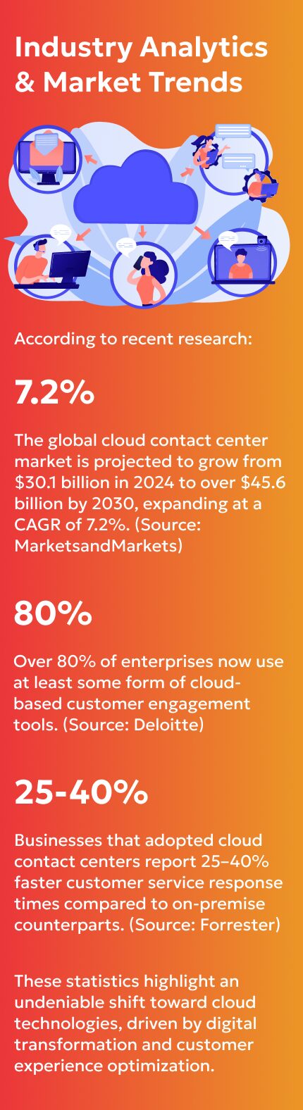 Both cloud and on-premise contact center solutions serve specific business needs. However, the future clearly leans toward cloud-centric models due to: